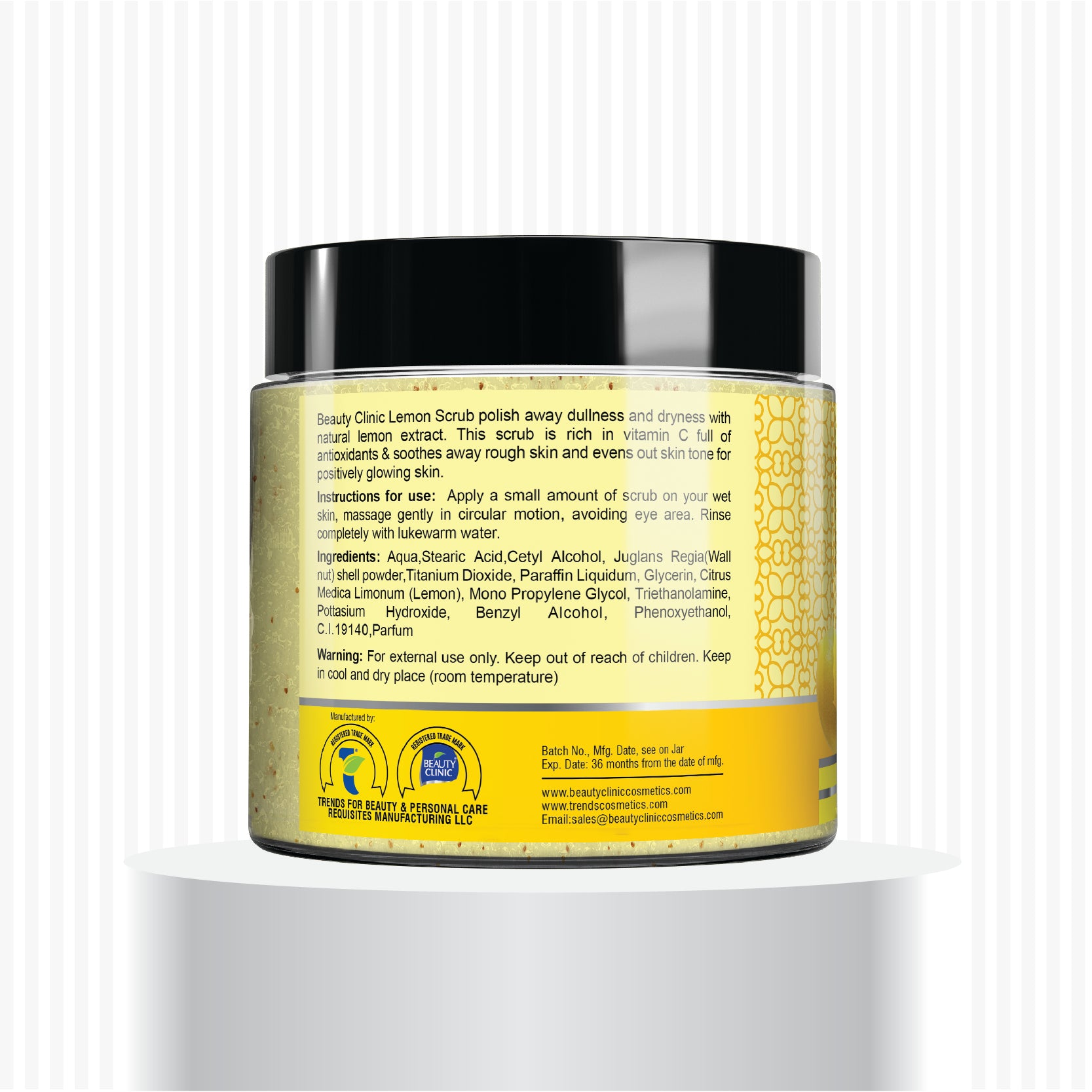 • Pure Lemon Zest: Imbued with the essence of pure lemons, our scrub brings the zesty freshness of citrus to your skincare routine..